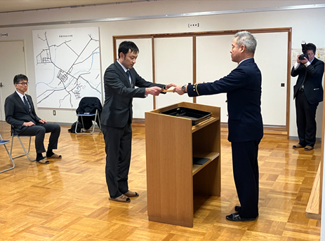 消防庁主催の自衛防災組織の技能及び士気向上並びに石油コンビナートの防災力強化を目的とした「石油コンビナート等における自衛防災組織の技能コンテスト」が行われ当社は「奨励賞」を受賞しました。胆振東部消防組合消防本部での授与式では「北海道石油共同備蓄隊」の隊長である伊藤直長が伝達式に出席、表彰状を授与されました。